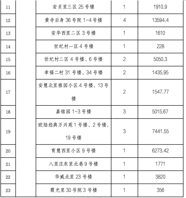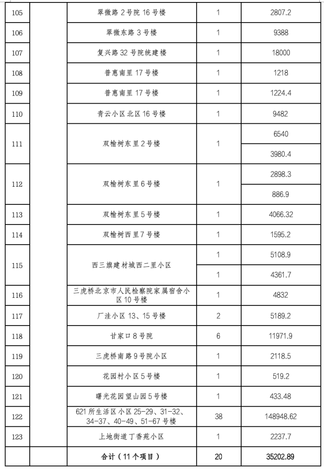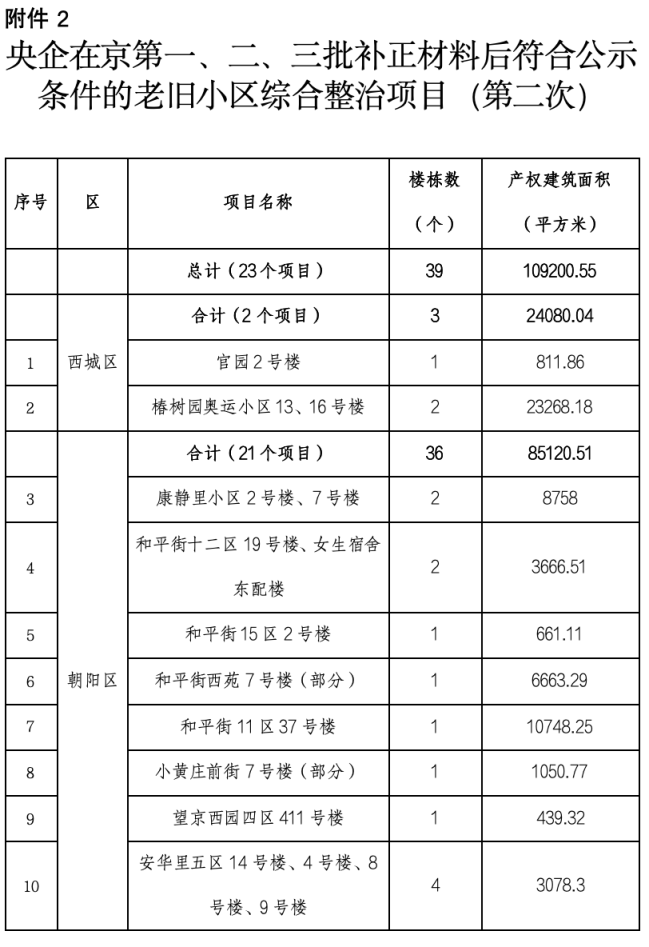 同期,此前第一、二、三批申报阵势中,有116个因材料待补正而暂未阐述。本次,其中23个阵势在补皆材料后得胜“闯关”,主要位于西城区和向阳区,触及39栋楼,建筑面积约10.9万时时米。西城区椿树园奥运小区13、16号楼以及向阳区和平街11区37号楼等是其中界限较大的代表。